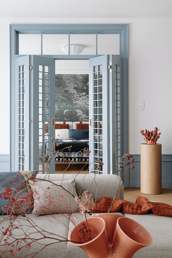 Eleganckie mieszkanie z błękitnymi drzwiami – urządzone „hotelowo” wnętrze sprzyja odpoczynkowi