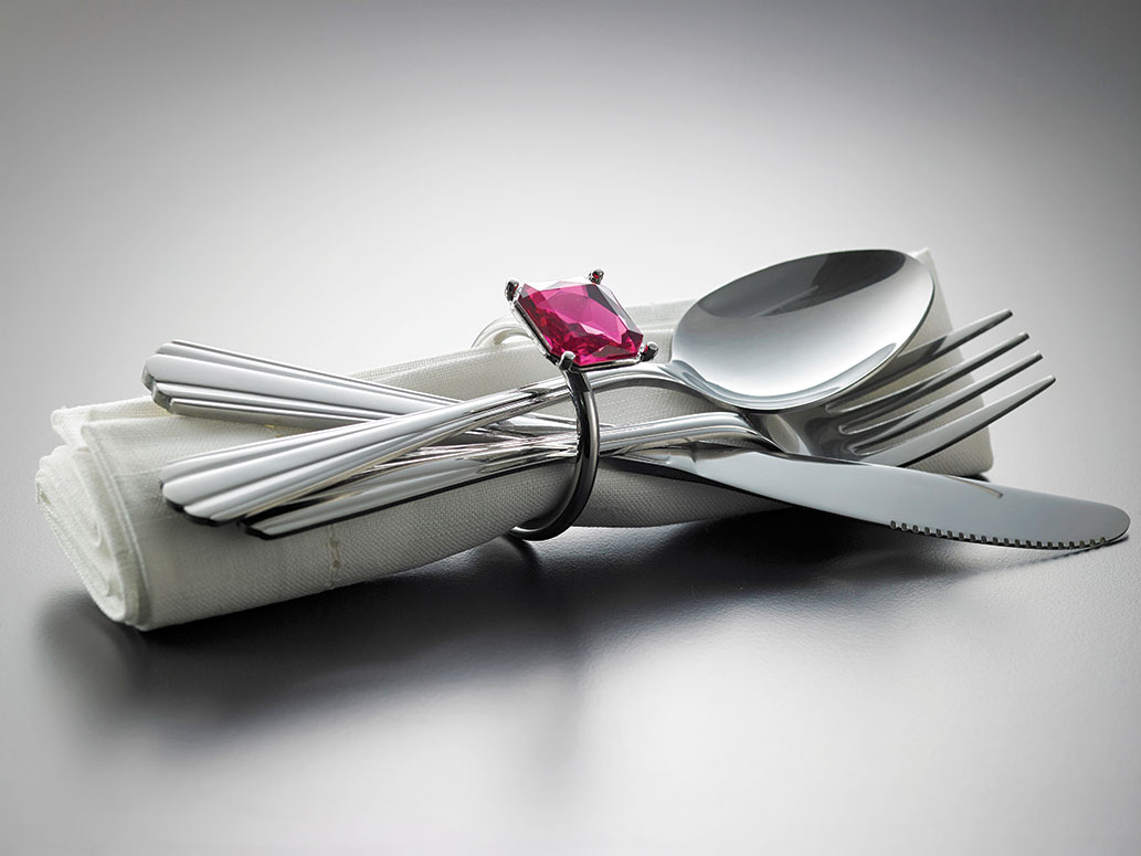 Pierścień na serwetkę i sztucće w kształcie... pierścienia. Z kolorowym kamieniem