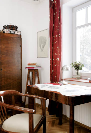 • Stół w kuchni ma pojemne szuflady. Piórkiem i tuszem