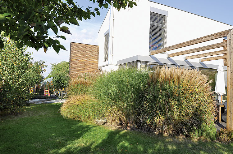 Przyroda sama zdecydowała, co ma tu rosnąć. Ewa posadziła drzewa, ale wszystkie uschły. Trawy za to przyjęły się znakomicie. Kiedy architektka Ewa Stryczek-Smolakowska projektowała swój dom, już myślała o tym, co będzie dookoła. Nie chciała czekać kilka lat na zieleń za przeszkloną ścianą salonu – to po pierwsze. Po drugie – dla niej dom i ogród to całość. Stąd jeden styl dla tego, co wewnątrz i na zewnątrz. Wszystko proste, czyste i nowoczesne. – Działka jest