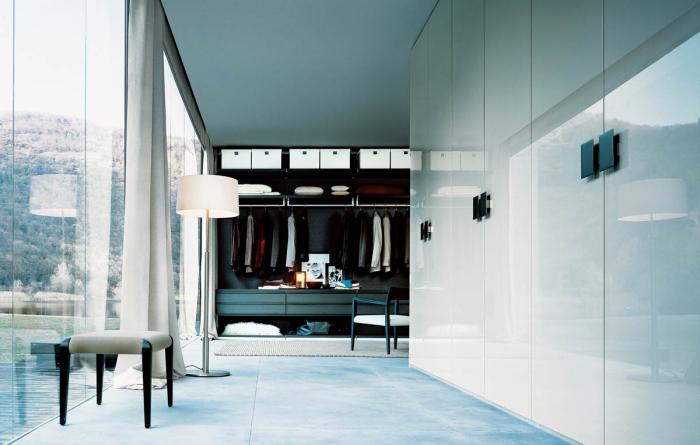 • Szaf nigdy za dużo - otwarta Senzafine i Sydney z drzwiami z barwionego szkła (3200 zł, moduł podstawowy). Poliform.