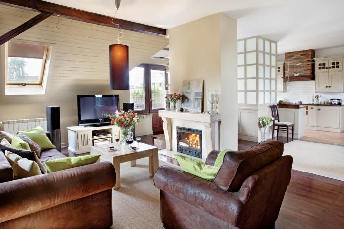 • Salon jest otwarty na hol. Poddasze w angielskim nastroju