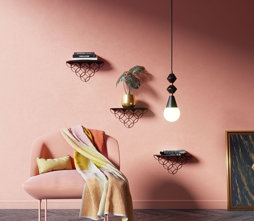 • metalowe półki i dekoracje na ścianę