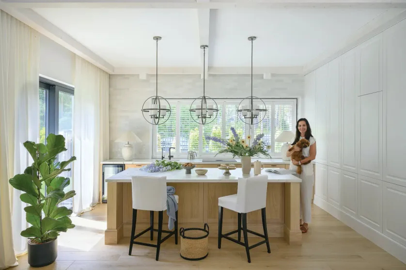 Eleganckie i przytulne wnętrza w stylu hamptons – w tym domu wśród sosen królują biel i jasne drewno