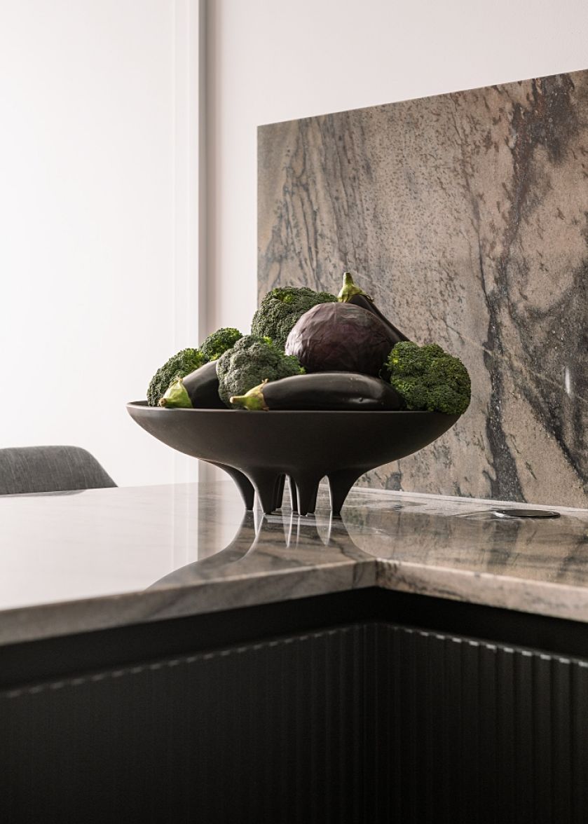 • marmurowy blat w kuchni