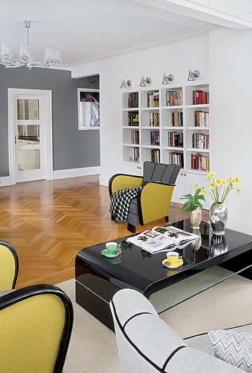 Fotele z lat 20. mają nowe obicia. Początkowo ich kolor nie widział się Piotrkowi. Teraz nie widzi salonu bez