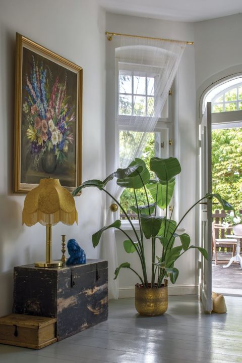 To wnętrze jest zaskakujące! W stuletnim domu klimat budują błękitny piec kaflowy i antyki zestawione z klasykami designu