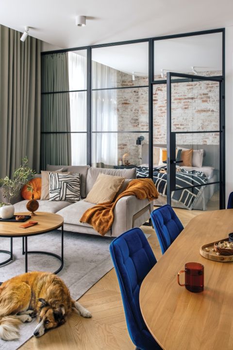 Mieszkanie w kamienicy urządzono prosto, ale ze smakiem. Czerwona cegła i metalowe elementy nadały wnętrzu loftowy klimat
