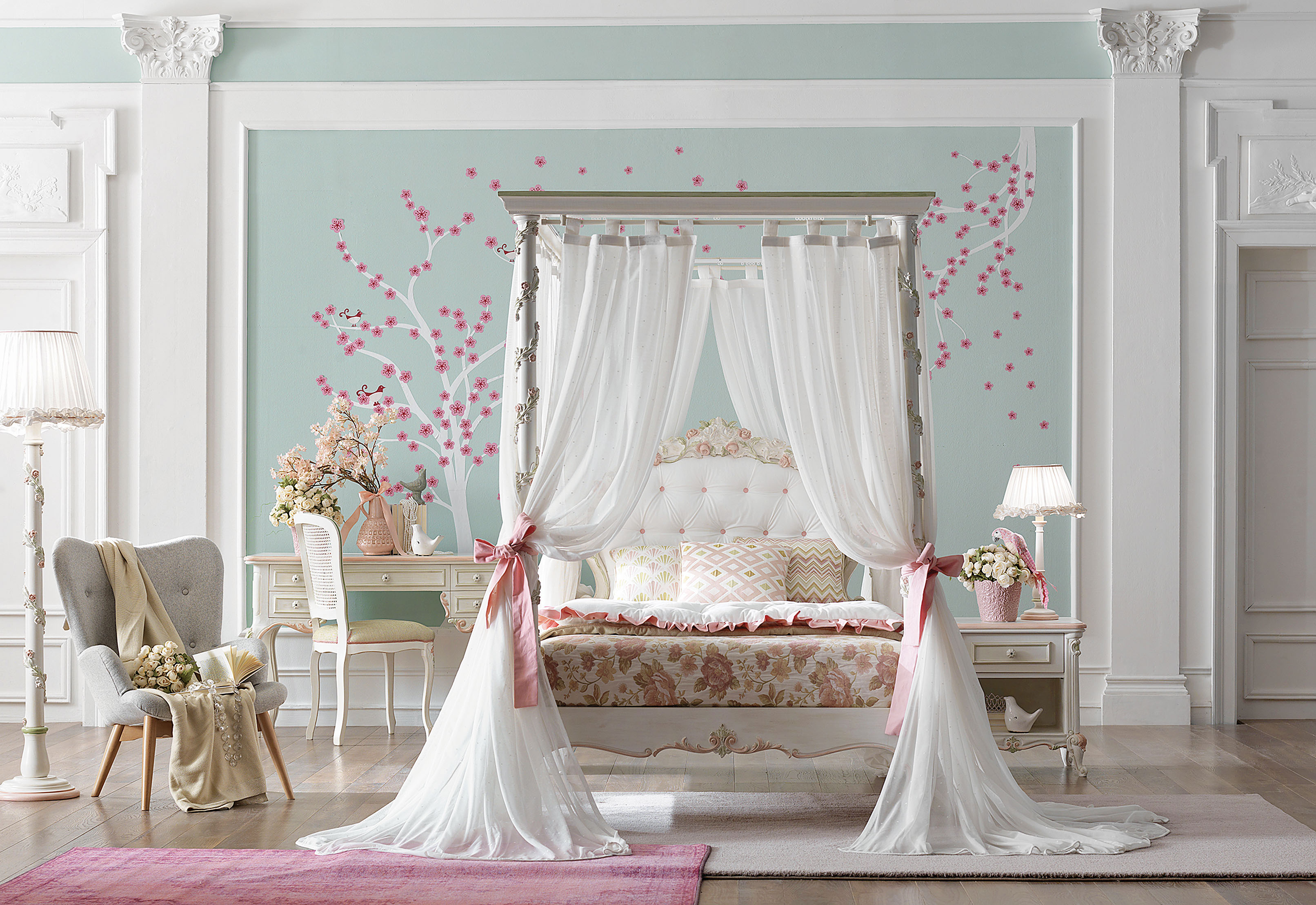 W takim pokoju wcale nie trzeba się bawić w księżniczkę. Po prostu się nią jest. Dzięki meblom Luigina i wszystkim romantycznym dodatkom.
