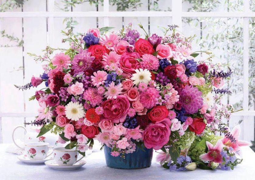 • Porcelanowy dzbanek w wiejskim angielskim stylu wypełniony bukietem kwiatów sprawi, że świąteczny poranek bez względu
