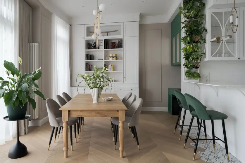 • jadalnia w salonie w stylu vintage