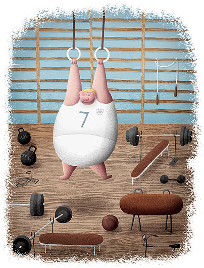Groteska, humor raczej czarny i magiczna sceneria. Prace Piotra Sochy są jak rysunki dla dzieci, które bawią rodziców. W pracowni Piotra Sochy (apartamentowiec w centrum stolicy) nie ma cienia artystycznego bałaganu. Żadnych ołówków, rapidografów, kartonów. Na sterylnym biurku miga jedynie monitor komputera, a na nim prawie skończona praca – wymagający nauczyciel (widać to po surducie i poważnej minie), który uczy trudnych s