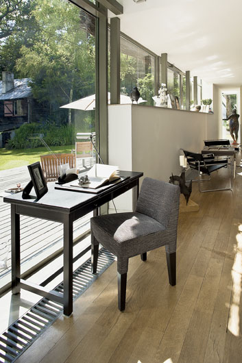 • Przeszklone ściany domu. Pracownia w modernistycznym domu
