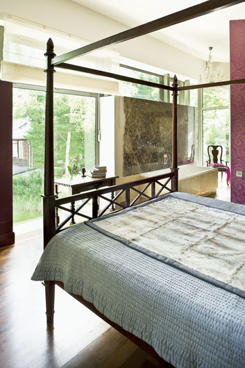 • Łóżko firmy Flamant. Pracownia w modernistycznym domu