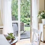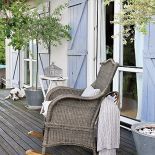 • Z salonu można wyjść na przestronny taras, na którym od wiosny do późnego lata stoją wygodne wiklinowe fotele.