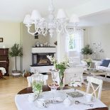 Dom zbudowany jest metodą kanadyjską. Jest pełen przestrzeni i światła. Rządzi tu głównie styl skandynawski przyprawiony gdzieniegdzie odrobiną Prowansji i rustykalnymi drobiazgami. Kobiecą rękę czuje się tu od progu: „gołębie” okiennice, plecione wianki na ścianach, doniczki z ziołami, siatka na motyle.   Dom kobiet: praktyczny i romantyczny   To dom trzech kobiet i jednego mężczyzny. One malują, szyją, majsterkują, grają na pianinie i gotuj