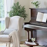 • Chłód skandynawskiej bieli przełamują ciepłe kolory dodatków i niektórych mebli, np, pianina.