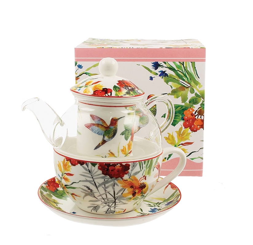 • prezent pod choinkę dzbanek z zaparzaczem i filiżanką