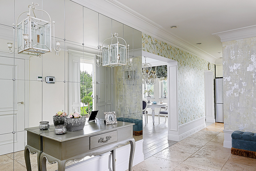 • Od strony holu, przy wejściu do jadalni, tapety w typowo prowansalskie - roślinne motywy.