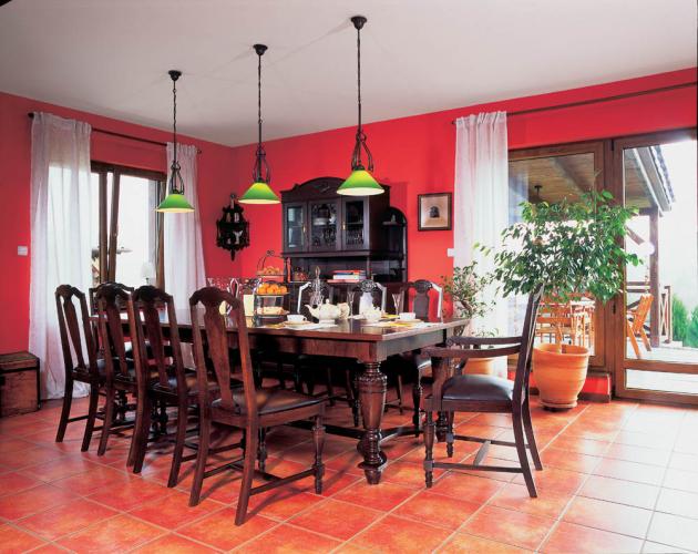 • W salonie znajdziemy reprodukcje obrazów Alfonsa Muchy i secesyjne lampy.
