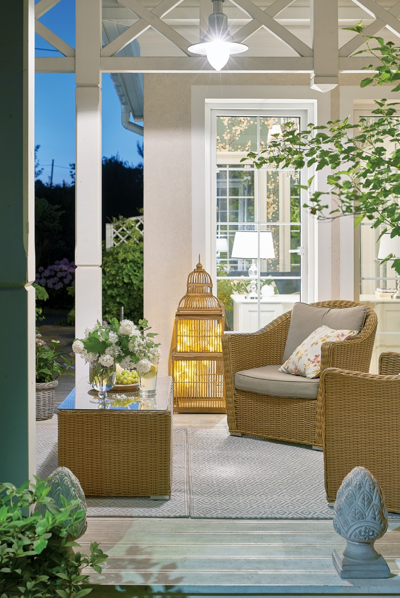 • wiklinowe fotele na werandzie
