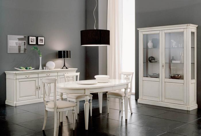 Jadalnia Canaletto firmy Piombini - meble pokryte są przecieranym matowym lakierem. KAG MEBLE I ŚWIATŁO