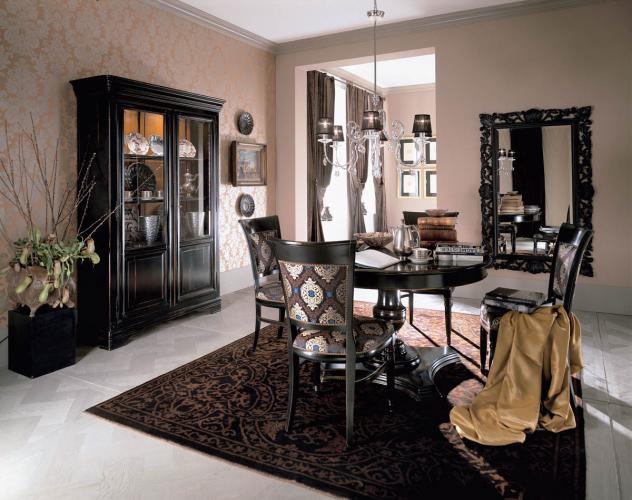 Jadalnia Louis Philippe inspirowana jest trochę średniowieczem, trochę renesansem, trochę stylem Ludwika XV. Meble zrobione są z olchy czerwonej, a fornirowane drewnem czereśni. Stół rozkładany - od 9700 zł, krzesła - od 1600 zł. SELVA