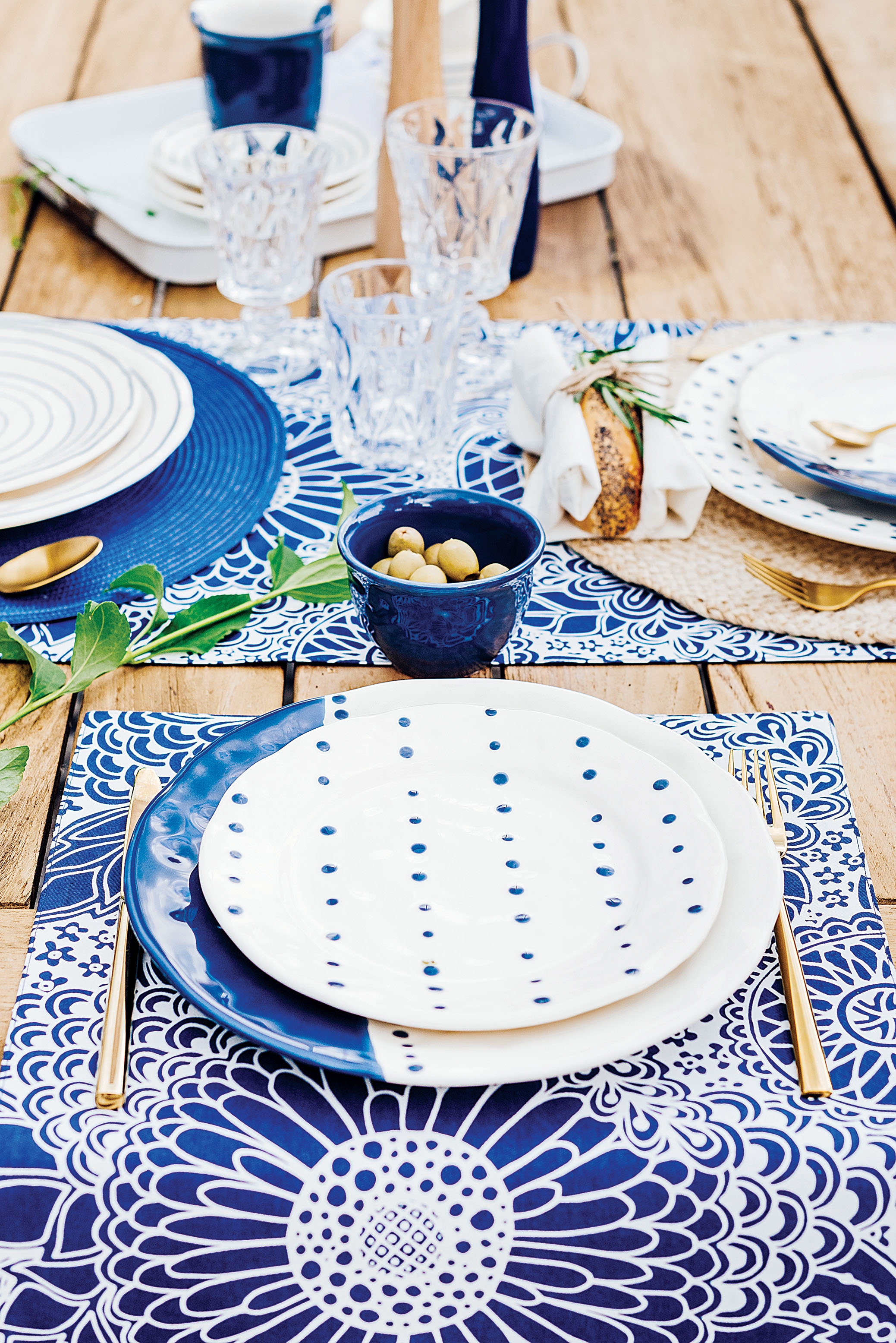 Stół w błękitach: kolekcja INDIGO, DUKA