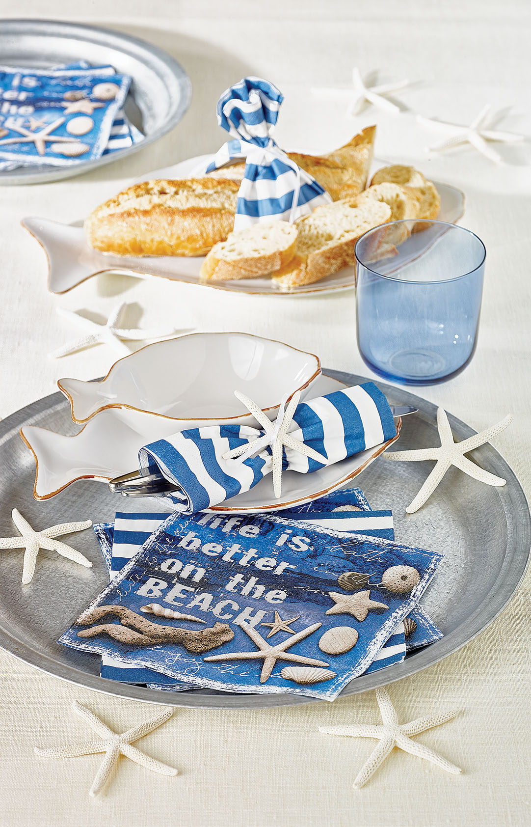 Stół w błękitach: LIFE IS BETTER, serwetki PAPER + DESIGN