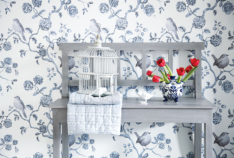 • Eijffinger, 281 zł/rolka. DECODORE. Ptaki na porcelanie, tkaninach, tapetach