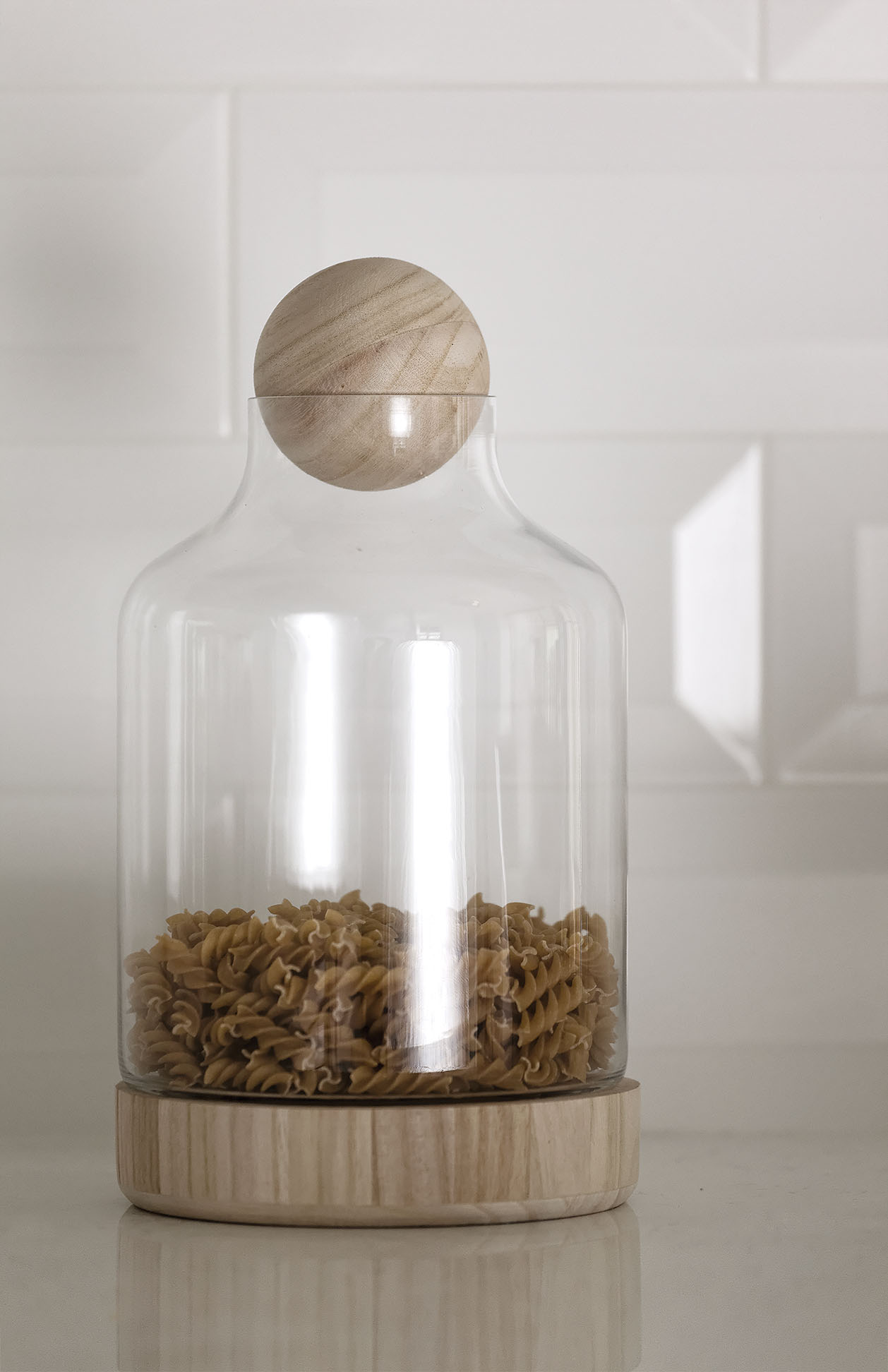 Kuchenne drobiazgi - waga, słoiczki na ciastka i makaron, chlebak - są ze sklepu Sweet Living Home Inspirations. Fot. Piotr Gęsicki