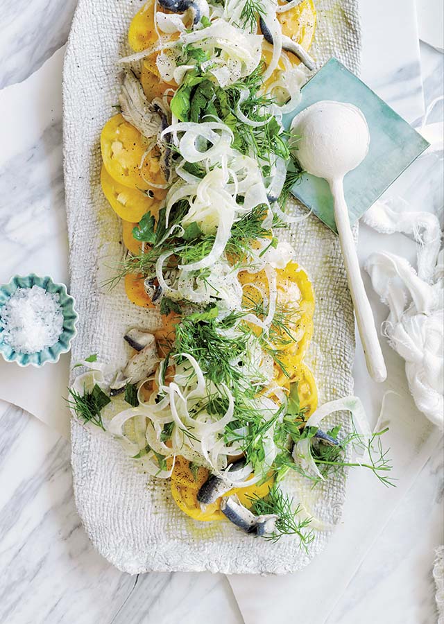 • Sałatka z żółtych pomidorów i kopru z anchois