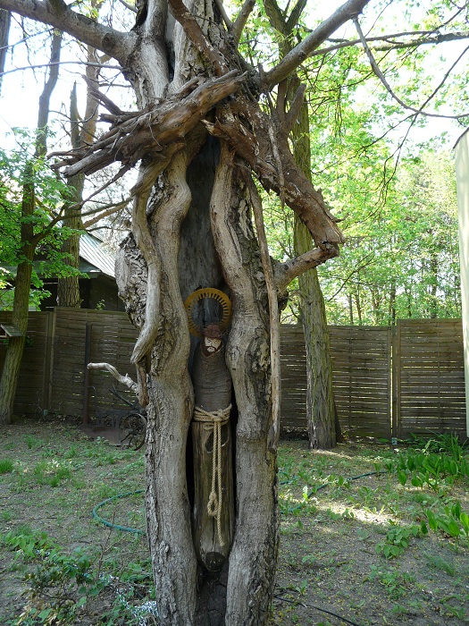 • Rzeźba wykonana z drewna olchowego i pomalowana bejcami do drewna. Mirosław Dziewiałtowicz, Stare