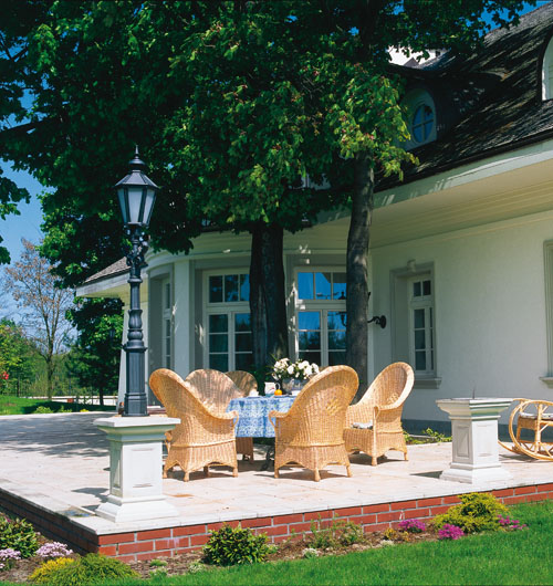 • Rodzina najchętniej przesiaduje na tarasie na tyłach domu. Ocienia go, niczym wielki parasol, stary wiąz.