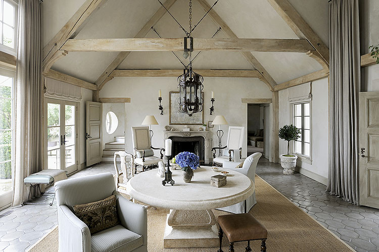 • Wnętrza urządzone w europejskim stylu. Ściany są nierówne, jakby nadgryzione zębem czasu. Bielone belki –
