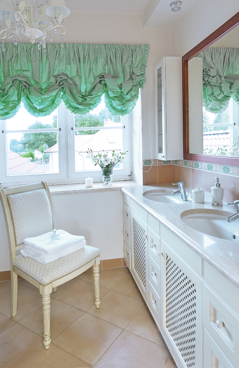 Rolety austriackie w stylowej łazience, Zdjęcie: Aneta Tryczyńska, Stylizacja: Katarzyna Sawicka