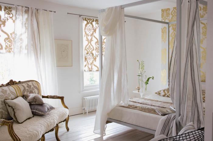 • Biel i złoto - szykowna para. Oparcie kanapy obite jest jedwabną tkaniną Roquelane firmy Designers