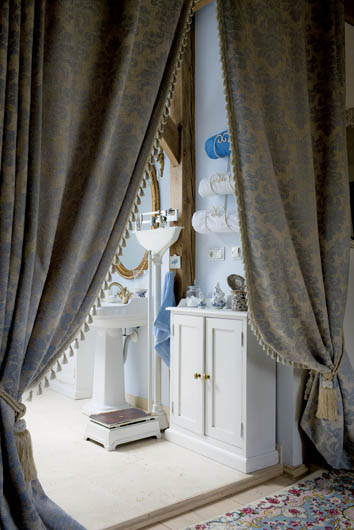 Przy aranżacji poddasza wykorzystano piękne, stylowe tkaniny.