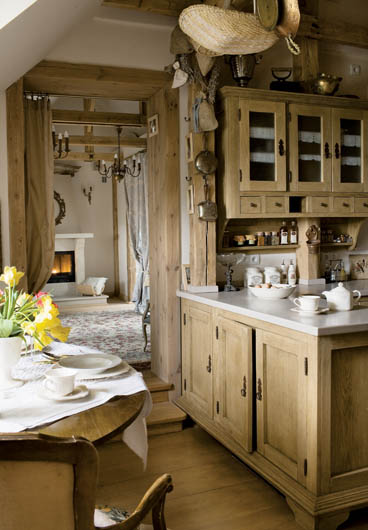 Sprawdzony stolarz ze starych belek podłogowych zrobił meble kuchenne, drzwi, elementy kominków.
