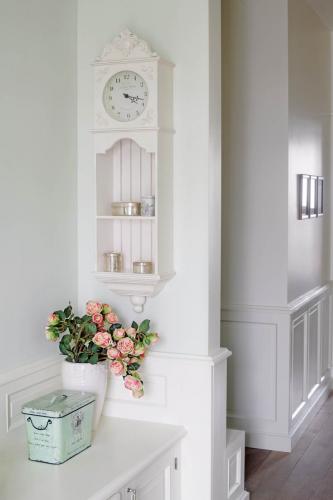 • Ściany zdobią drewniane ramki. Róże i falbanki