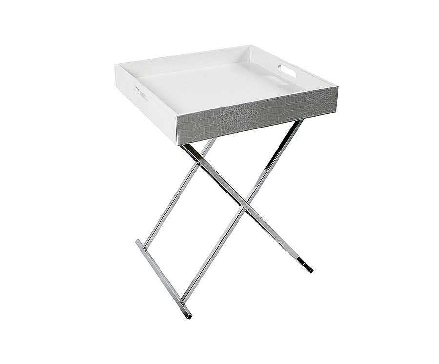 • Durban, metalowa podstawa, taca powlekana skórą, 379 zł, Westwing.