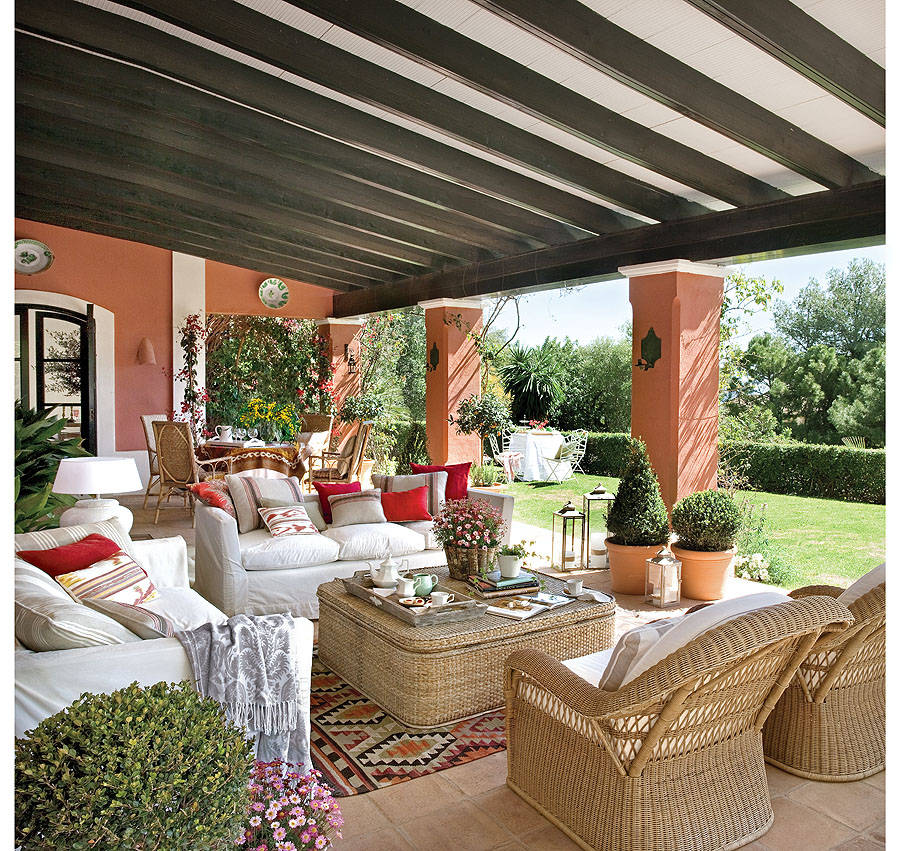 Pomysł na aranżację podpatrzyli w wiejskich andaluzyjskich rezydencjach. Stąd podłoga ulepiona z gliny, grube ściany, jasne pokoje, fotele obite surowym lnem, terakotowe płytki, kosze i dywany wyplatane z rafii.