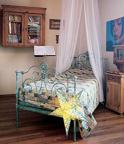 Łóżko dla Weroniki wypatrzyli w antykwariacie na poznańskim Starym Rynku. Było niekompletne- miało tylko przód i tył. Sami dorobili części, a potem Agnieszka je pomalowała.