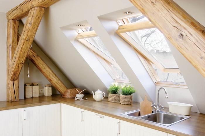 • Drewniane krokwie są piękną ozdobą wnętrza.