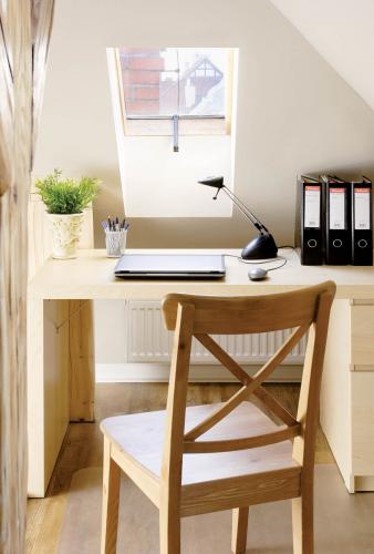 • Drewniane krokwie są piękną ozdobą wnętrza.