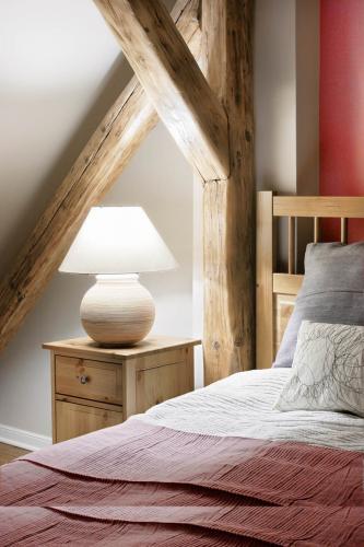 • Drewniane krokwie są piękną ozdobą wnętrza.