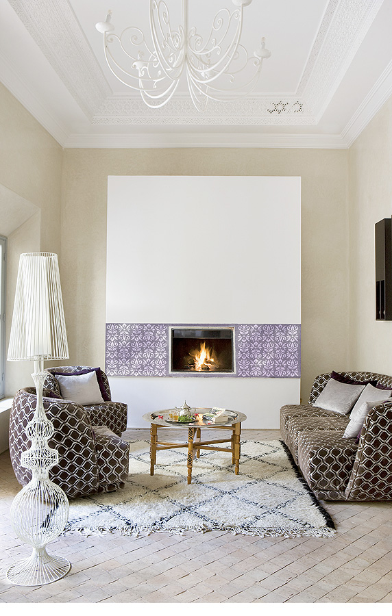 Ten wzór jest jak kameleon, bo dopasowuje się do każdego wnętrza. Sprawdzi się więc i jako biały ornament na ciemnym tle, który przypomina klasyczną elegancką lilijkę, i w wersji różnokolorowej – na przykład na drewnianej komodzie – wtedy motyw będzie miał charakter bard