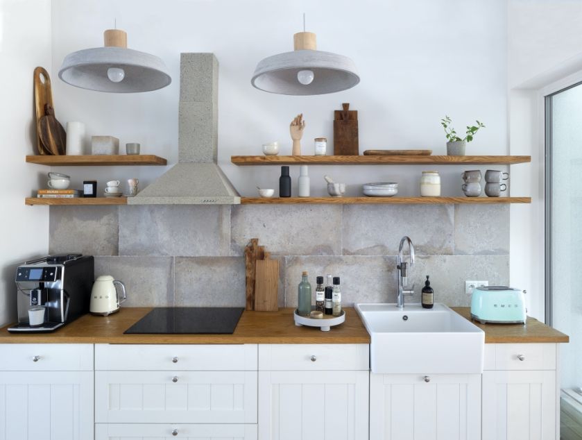 • drewniane półki w kuchni