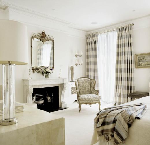Kominek w sypialni. W bieli i lustrach