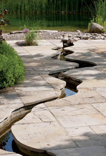 • Gospodyni uparła się, aby ścieżkę prowadzącą do wody i brzeg oczka wyłożyć płytami z piaskowca.